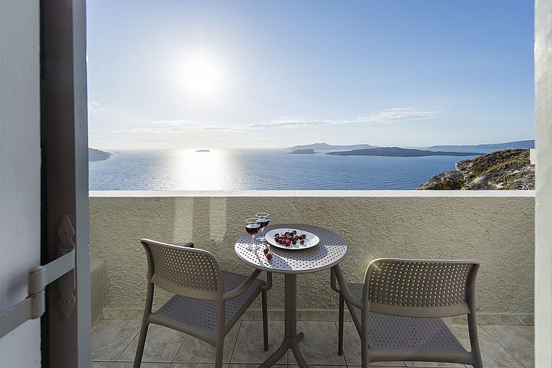 Traumhafte Lage, klein, familiär und sehr komfortabel! Das erst 2015 komplett renovierte Hotel mit nur 12 Zimmern liegt in Megalochori, einem kleinen Dorf südwestlich von Fira und bietet seinen Gästen einen atemberaubenden Blick über die Ägäis. Ein großer Süßwasserpool mit Sonnenterrasse und Poolbar lädt zum Verweilen ein, Liegen, Sonnenschirme und Badetücher sind am Pool inklusive.