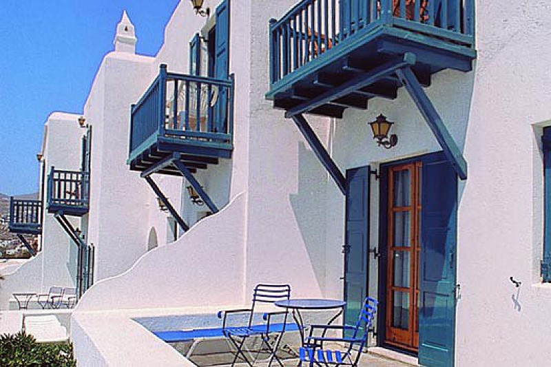 Zu den weiteren Annehmlichkeiten des Hotels zählen ein großer Außenpool mit Sonnenterrasse und Liegestühlen, von wo Sie die Sonne und die herrliche Aussicht auf das ägäische Meer und den Hafen von Mykonos genießen können und eine Poolbar, die Sie mit Cocktails oder frischen Fruchtsäften verwöhnt.